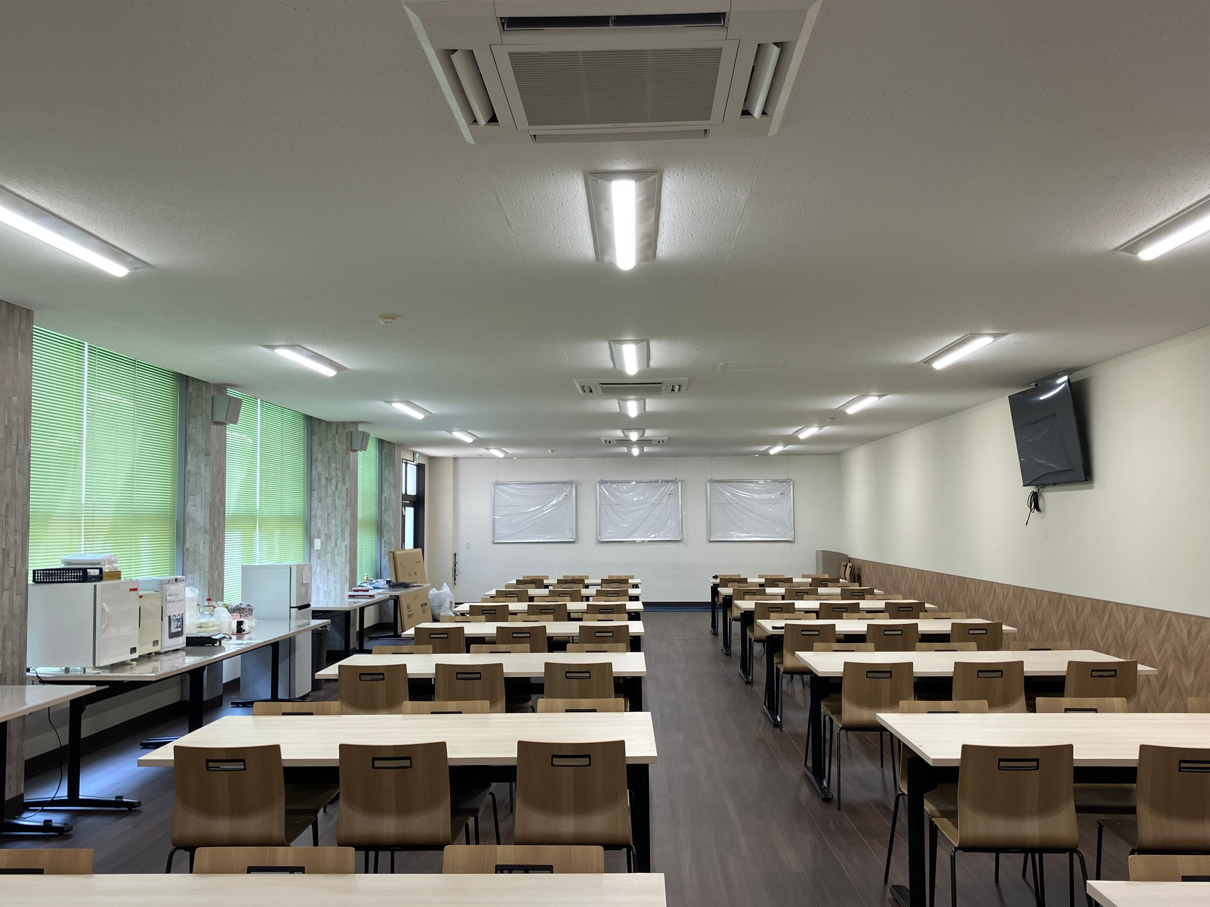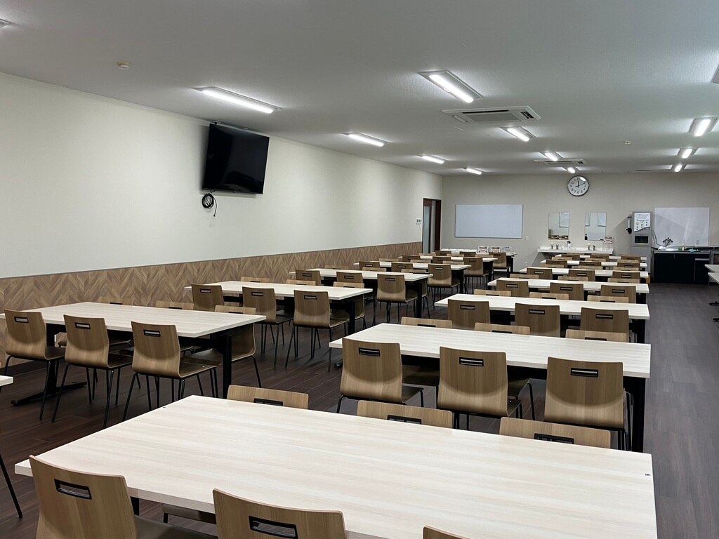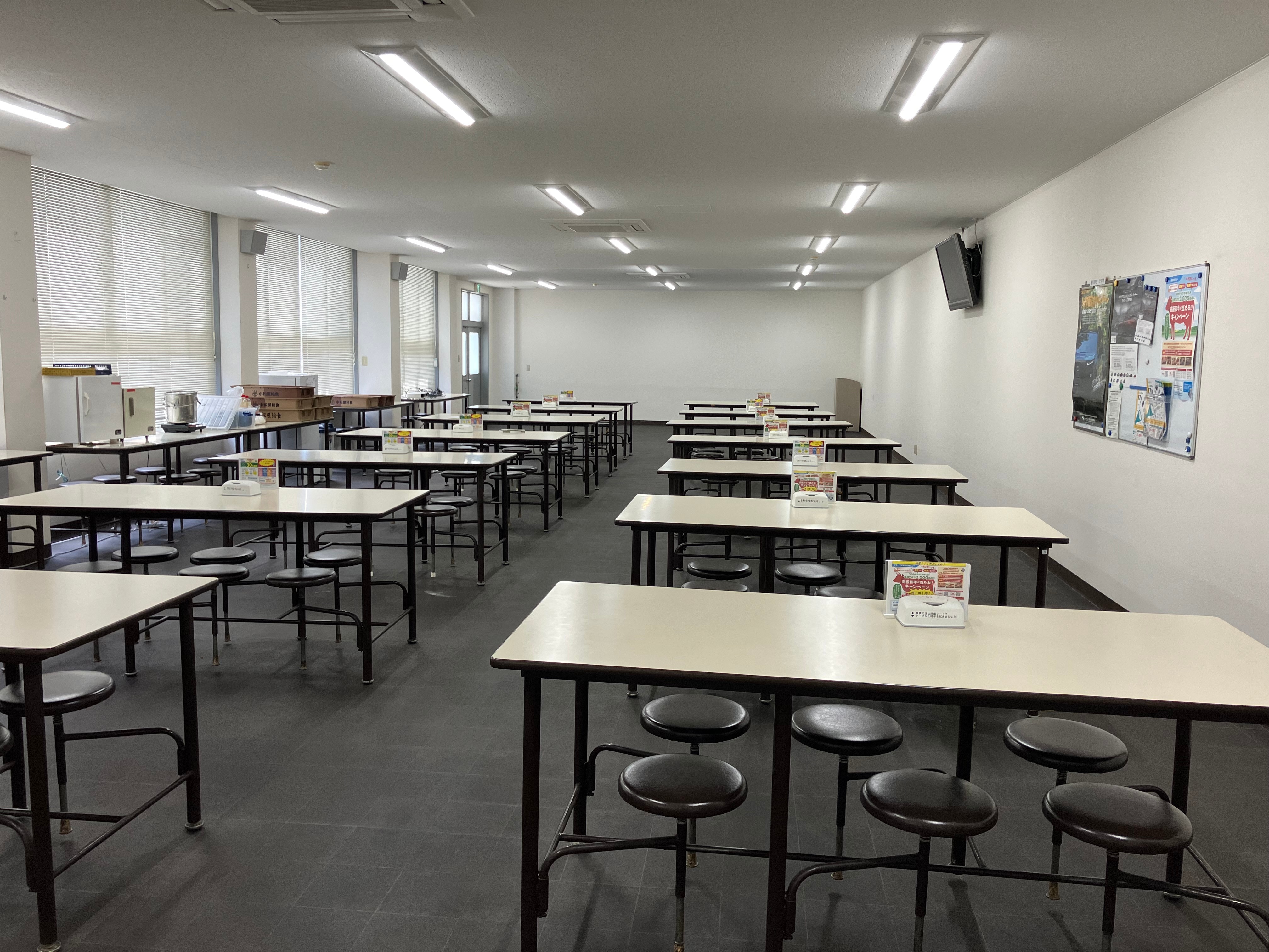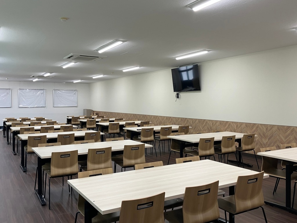 また、社長様挨拶や社内行事では社旗等を掲示できる様、ピクチャーレールを設置し交流や式典にも対応できる食堂が実現しました。