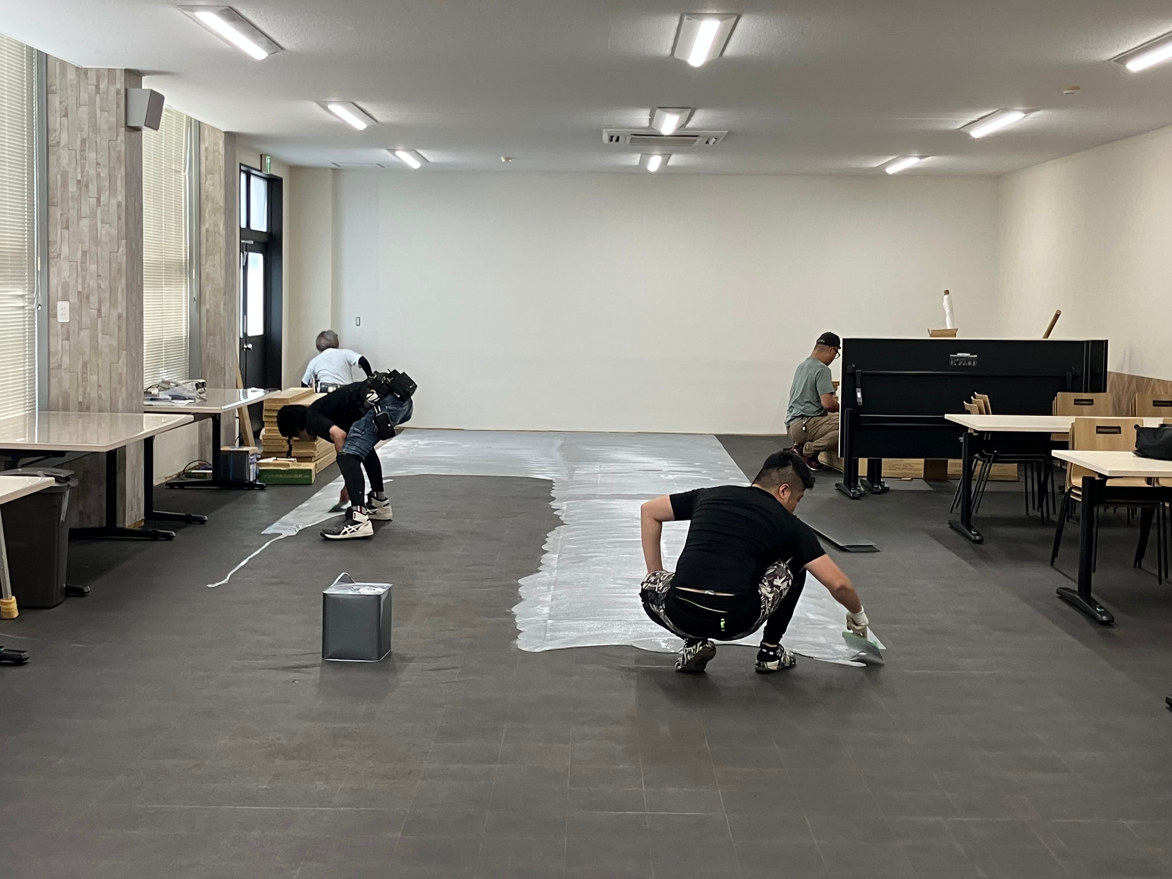 床材は工場で働く作業員の使用を考慮し、汚れが目立ちにくいダークな木目調を選定