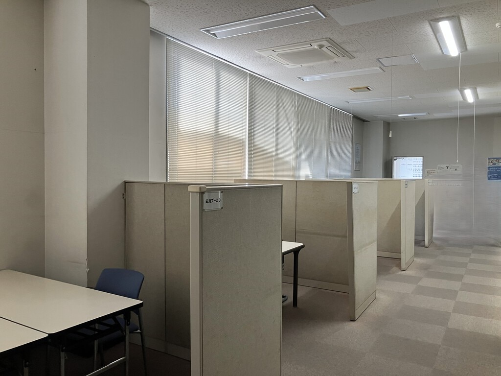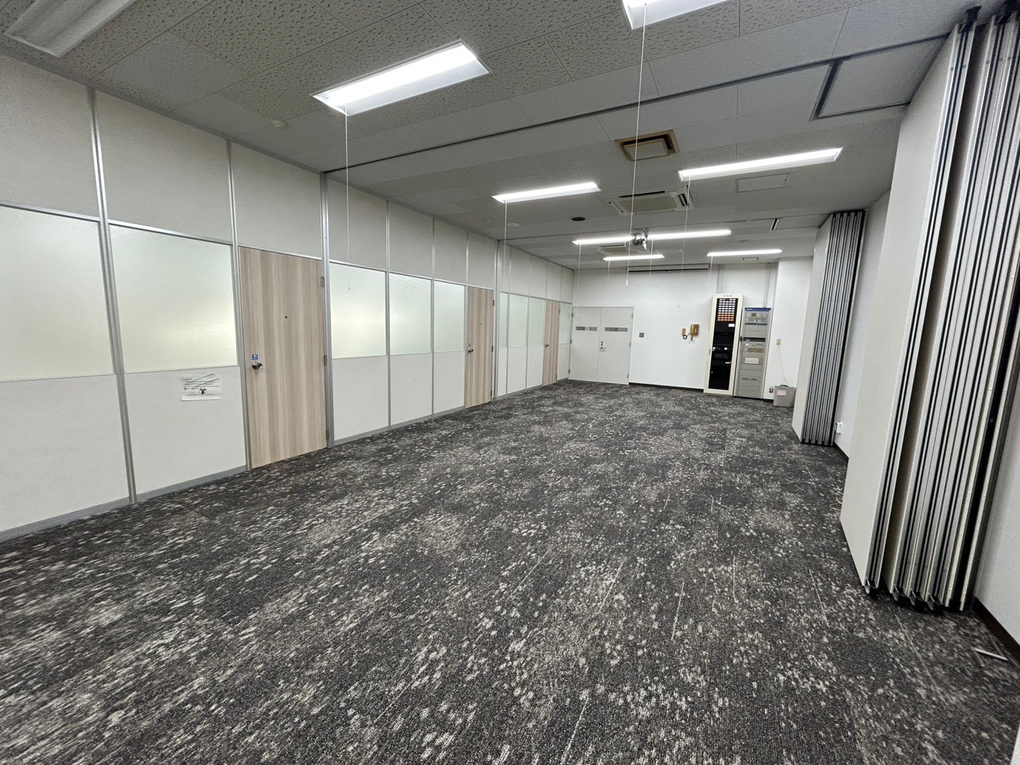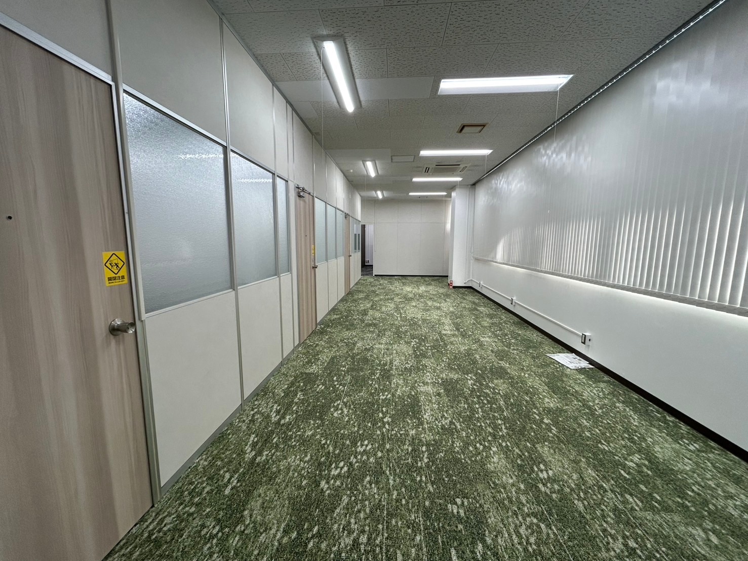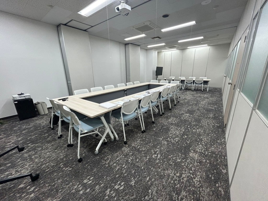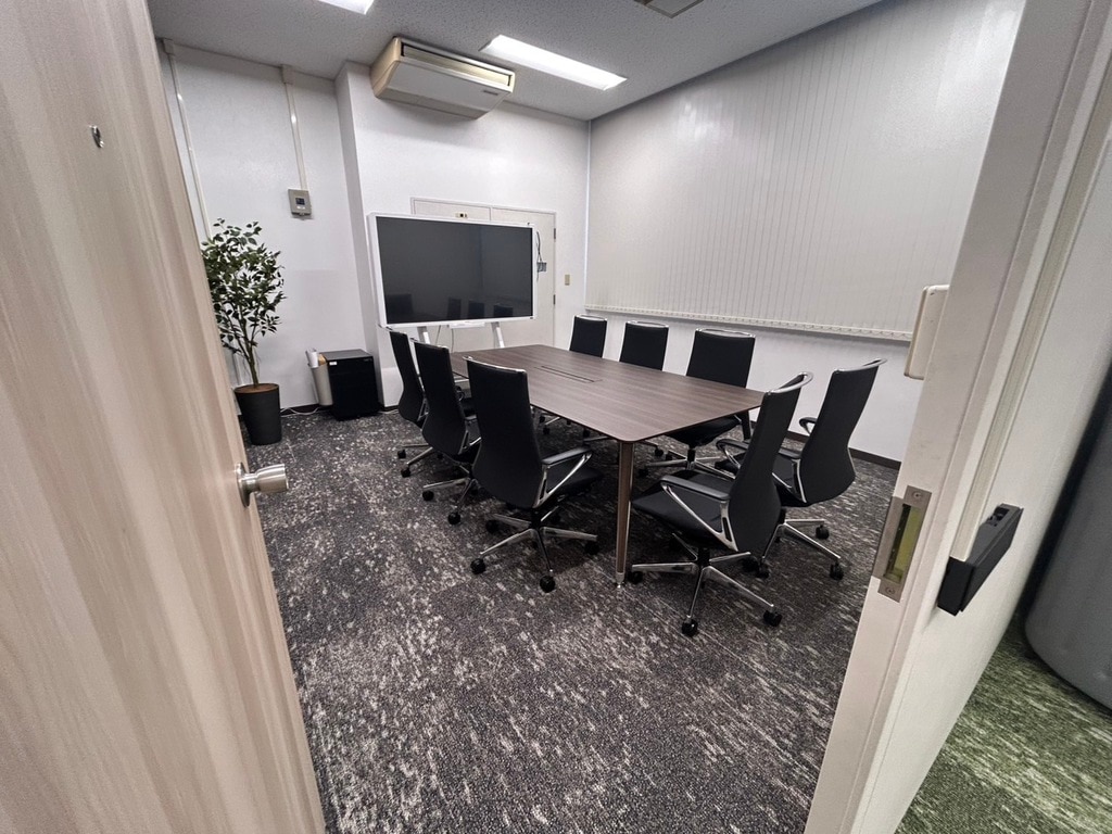 また、会議室については、応対エリアよりも更に落ち着いた空間演出の為、グレー系統の床材で仕上げるとともに、まだら模様の材料を使うことで、汚れの目立ちにくさにも配慮しました。
